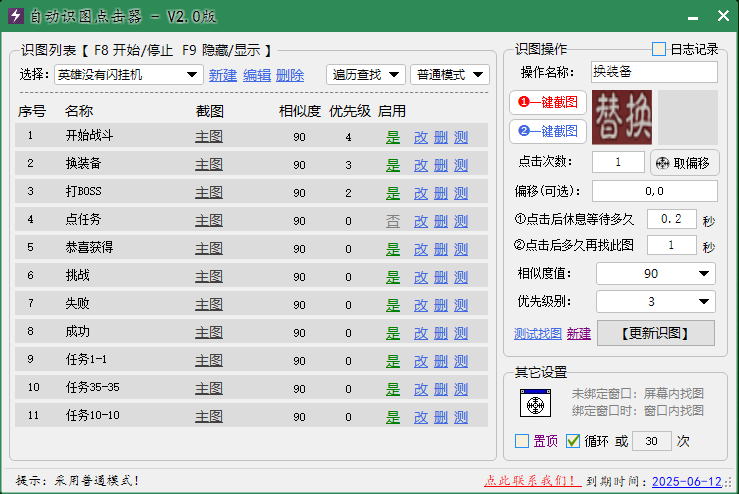 - 查找模式(遍历-按优先级,出现哪个图就点击哪张图、逐个-按优先级,一张一张查找图,直到找到才查找下一张图)